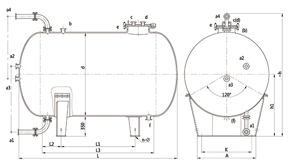 W3000L-W80000L臥式搪玻璃貯罐(臥式搪玻璃儲罐)設計圖紙及參數如下所示: