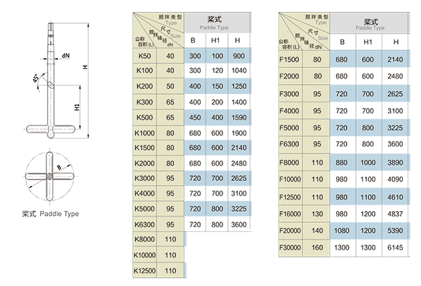 搪玻璃槳式攪拌器:搪玻璃槳式攪拌器分為平槳和斜槳兩種型式。每種型式又分一擋槳葉和兩檔槳葉。每擋攪拌槳葉數為4,屬于徑流式攪拌,主要功能是剪切,標準的搪玻璃槳式搪玻璃攪拌器的轉速不超過125r/min,總體上屬于慢速搪玻璃攪拌。斜槳的槳式攪拌器除了對物料有剪切作用之外,還有一定的軸向液體循環的功能。