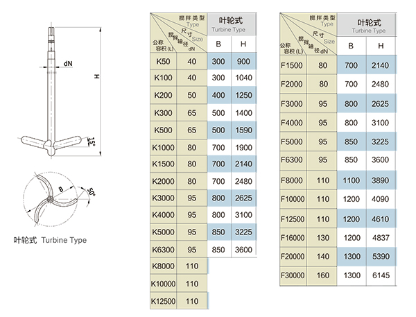 該攪拌器是使流體在葉片推動下,產生軸向和徑向運動,能提供較強的剪切力,促進氣泡和液滴的細化、混合,擴大兩者接觸面,加快傳熱、傳質過程。葉輪式攪拌器適應范圍廣泛。它配上適當的折流擋板,適合混合、導熱、聚合、乳化、氣體吸收及懸浮等過程,能達到比較好的攪拌效果。且單位動力的排放量比錨式和槳式大,使得液體有較大的主體循環量及湍流強度,適用于要求強烈攪拌的場合。