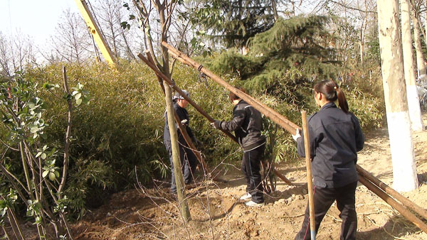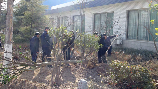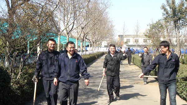 每年一度的“3月12日植樹節”在山東淄博太極搪玻璃設備公司年年都過。由于全國各地廣大用戶對太極搪玻璃反應釜等搪玻璃設備的需求越來越大,所以生產進度絕對不能耽誤,車間工人這天都會緊鑼密鼓的努力生產工作,所以植樹種花美化太極家園的任務則由公司辦公后勤人員來完成,在領導的分工安排下,吊卸組、修剪組、轉運組、挖坑組、種植組、支架組、澆灌組等分工明確、井然有序大家一同努力來把太極家園美化。