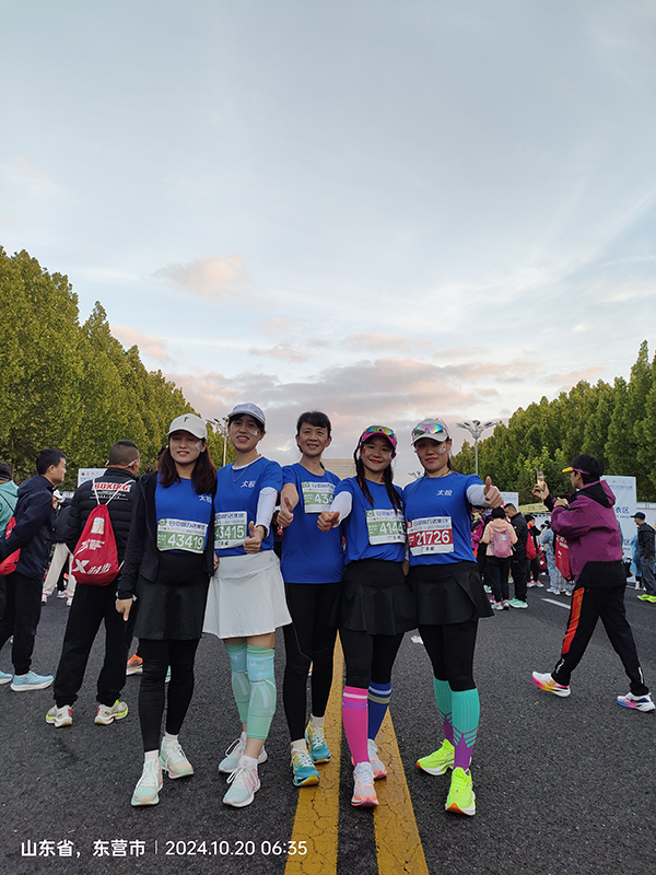 2024年10月20日太極搪瓷跑團中15人參加了“2024東營黃河口馬拉松比賽”全部圓滿完賽。大家努力奔跑,遇見了更好的自己,代表了太極人對生活對健康對工作的熱愛。