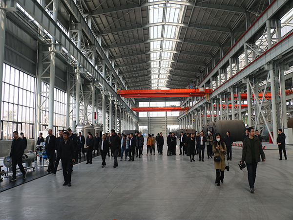 2月17日(星期四)下午1:40,淄博市周村區人大常委會主任闞金智、周村區政協主席國衛兵攜周村區黨委政委一行 50 余人來太極大型高端搪玻璃機械裝備廠考察學習,對于廠區建設及車間管理給予高度贊揚和肯定。