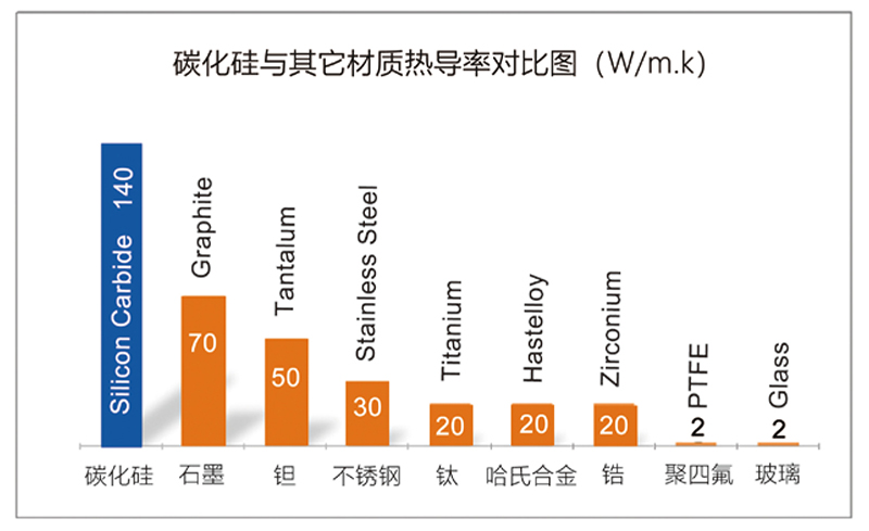 碳化硅換熱器熱導效率遠遠高于其它傳統耐腐蝕材料的換熱器;