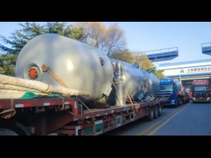 4.5萬升上封頭外包不銹鋼搪玻璃反應釜發貨現場